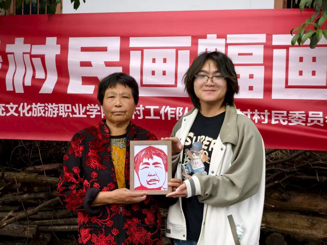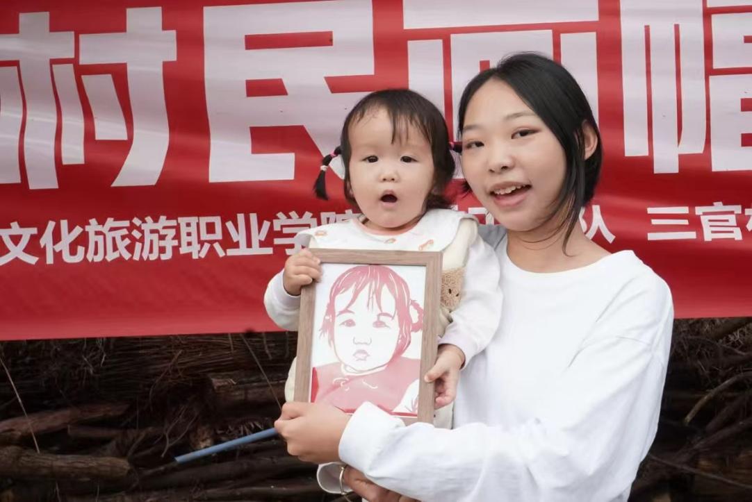 活动中,基地师生首先向村民介绍了剪纸这一传统非遗技艺的历史与特色,并现场演示剪纸基本技法,引导村民感受传统文化的魅力。随后,学生团队发挥专业特长,为村民进行数字画像创作,结合剪纸工艺进行剪刻,制作成实物作品赠予村民。一幅幅生动传神的人物剪纸画,既展现了非遗技艺的现代转化,也传递了师生对村民的深情厚谊。